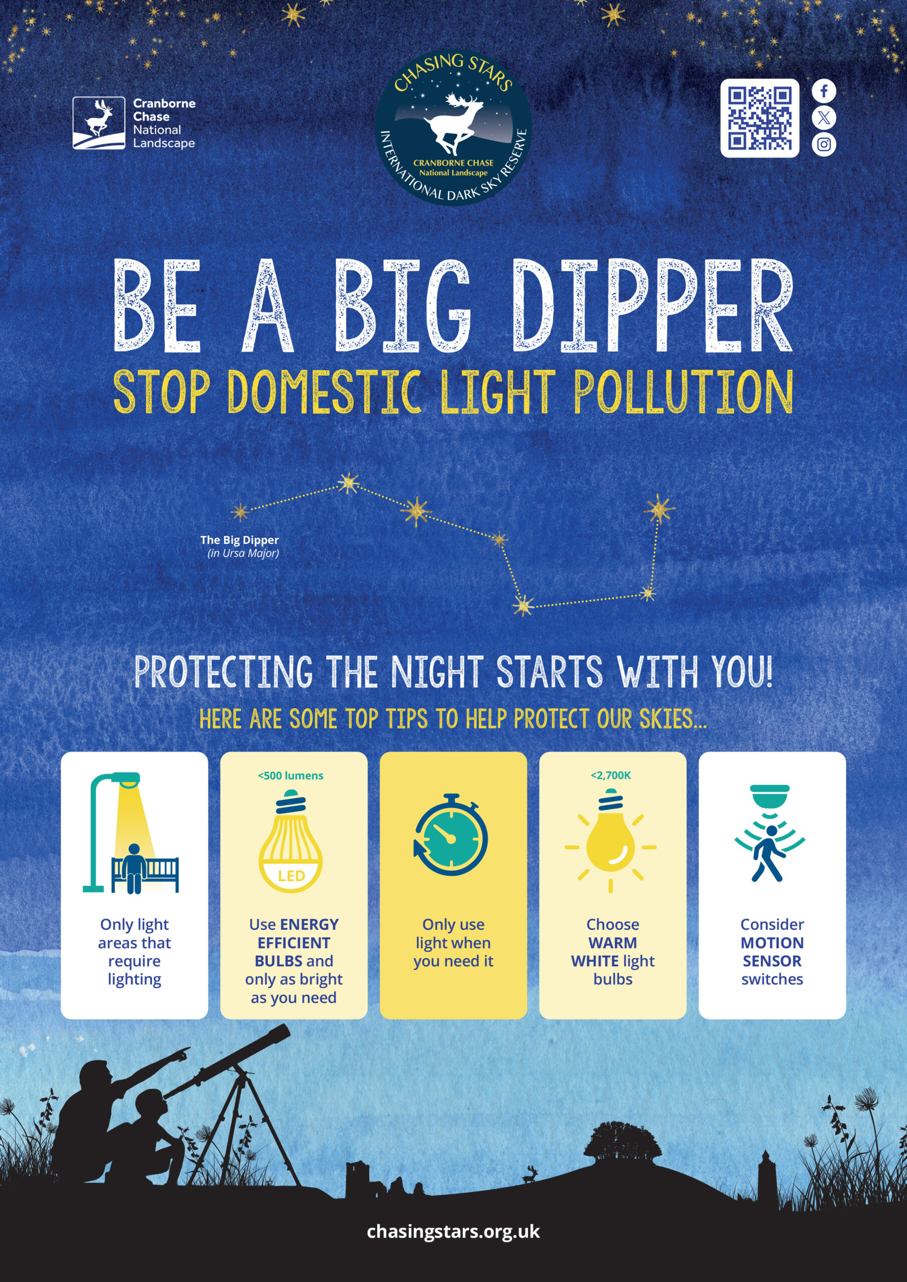 Cranborne Chase International Dark Sky Reserve (IDSR) has launched a new campaign, asking the community to help stop domestic light pollution by being a ‘Big Dipper’, and reducing the artificial light that they use.